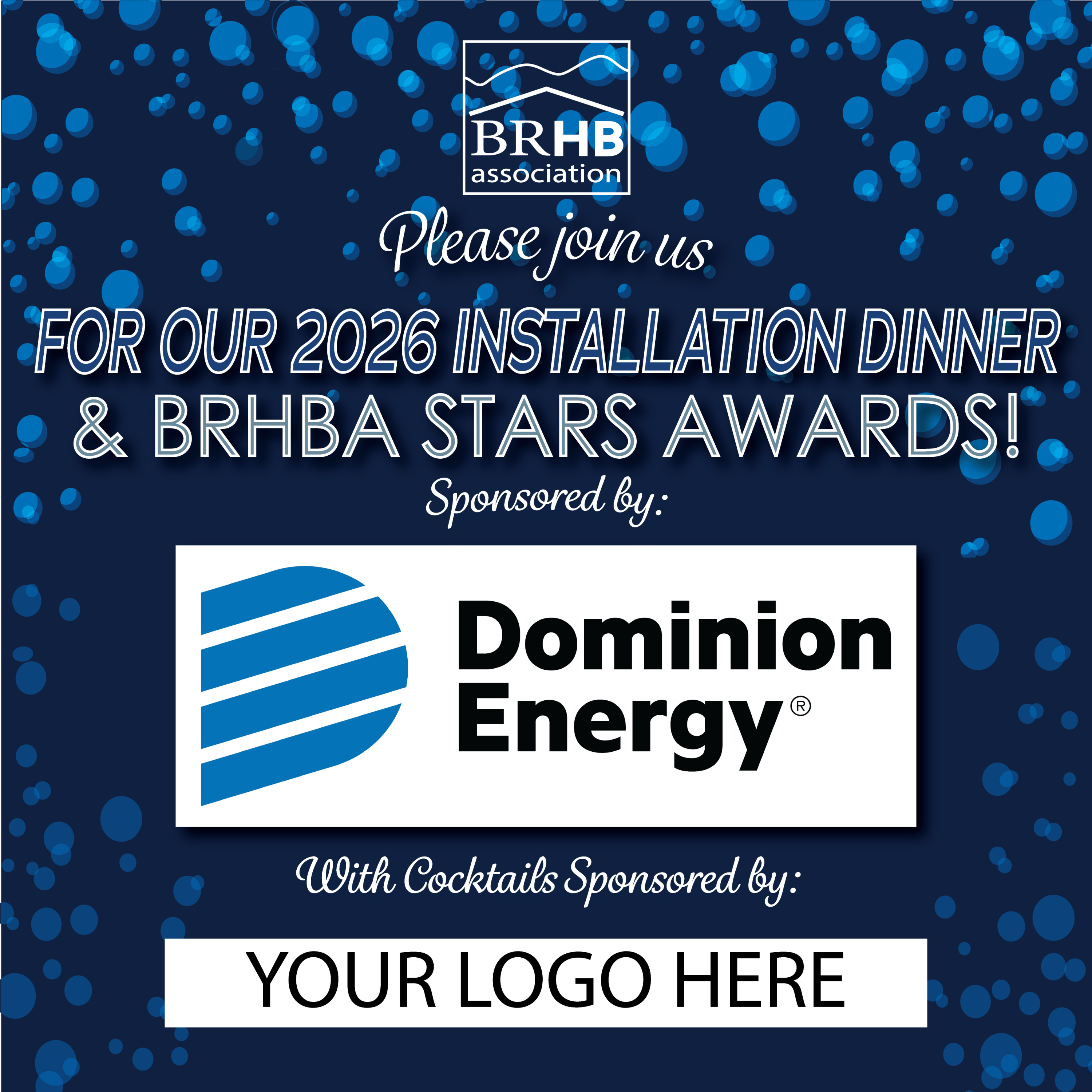 Join us on Thursday, January 22, 2026, for one of BRHBA’s most anticipated evenings of the year — our Installation Dinner and BRHBA Stars Awards, proudly sponsored by Dominion Energy. The celebration will take place in the Boar’s Head Inn Ballroom from 6:00 – 9:00 pm.