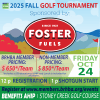 Join us in our Fall Golf Tournament, sponsored by Foster Fuels. The Fall Golf Tournament is scheduled to take place on Friday, October 24, 2025 at Stoney Creek Golf Course..