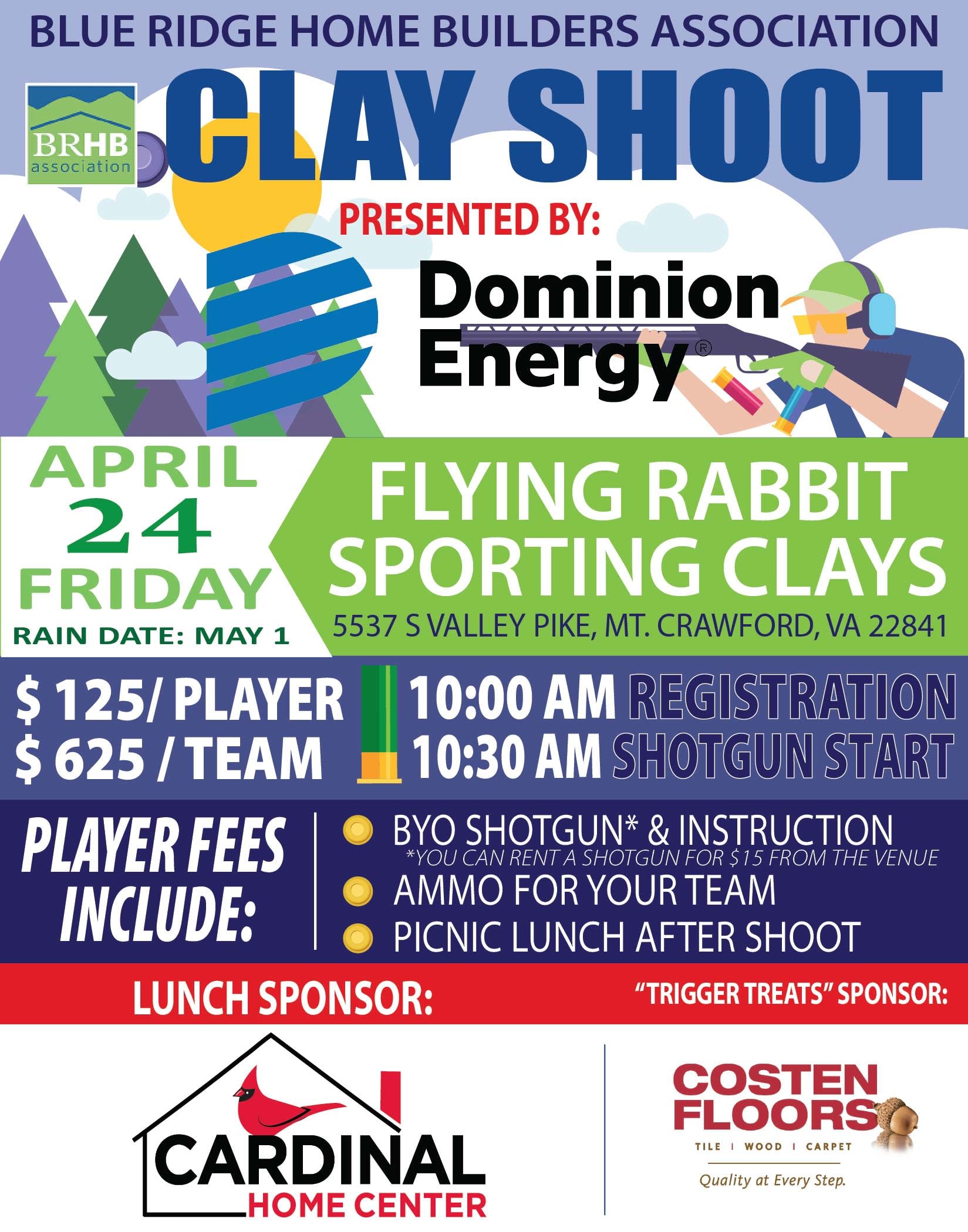 Join us as we travel over the mountain to Flying Rabbit Sporting Clays near Harrisonburg to gather outdoors for our 2026 Clay Shot, sponsored by Dominion Energy, with Lunch Sponsor Cardinal Home Center, and Trigger Treats sponsored by Costen Floors.